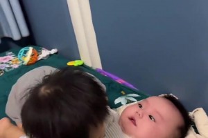 亲生娃待遇不同,一个躺地玩一个窝家长怀里
