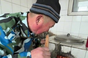 孩子年后整蛊爸爸,用香蒲棒当烤肠